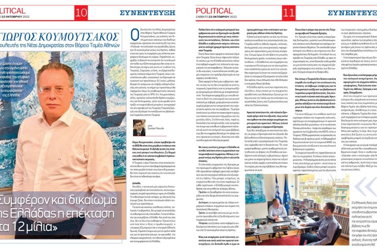 Οκτ222022 ΝΕΑ Συμφέρον και δικαίωμα της Ελλάδας η επέκταση στα 12 μίλια νότια της Κρήτης / συνέντευξη στο Political ΔΙΑΒΑΣΤΕ ΠΕΡΙΣΣΟΤΕΡΑ