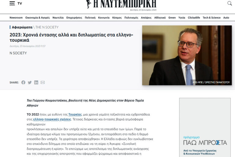 Ιαν232023 ΝΕΑ 2023: Χρονιά έντασης αλλά και διπλωματίας στα ελληνο-τουρκικά / άρθρο μου στην Ναυτεμπορική ΔΙΑΒΑΣΤΕ ΠΕΡΙΣΣΟΤΕΡΑ