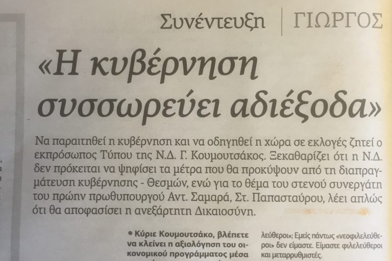 Συνέντευξη στην «Εφημερίδα των Συντακτών» και το δημοσιογράφο Μπάμπη Αγρολάμπο