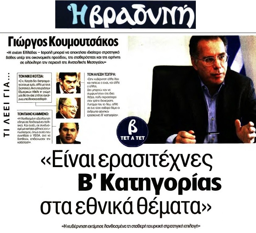 Συνέντευξη στην εφημερίδα Βραδυνή και την Ειρήνη Μπέλλα.