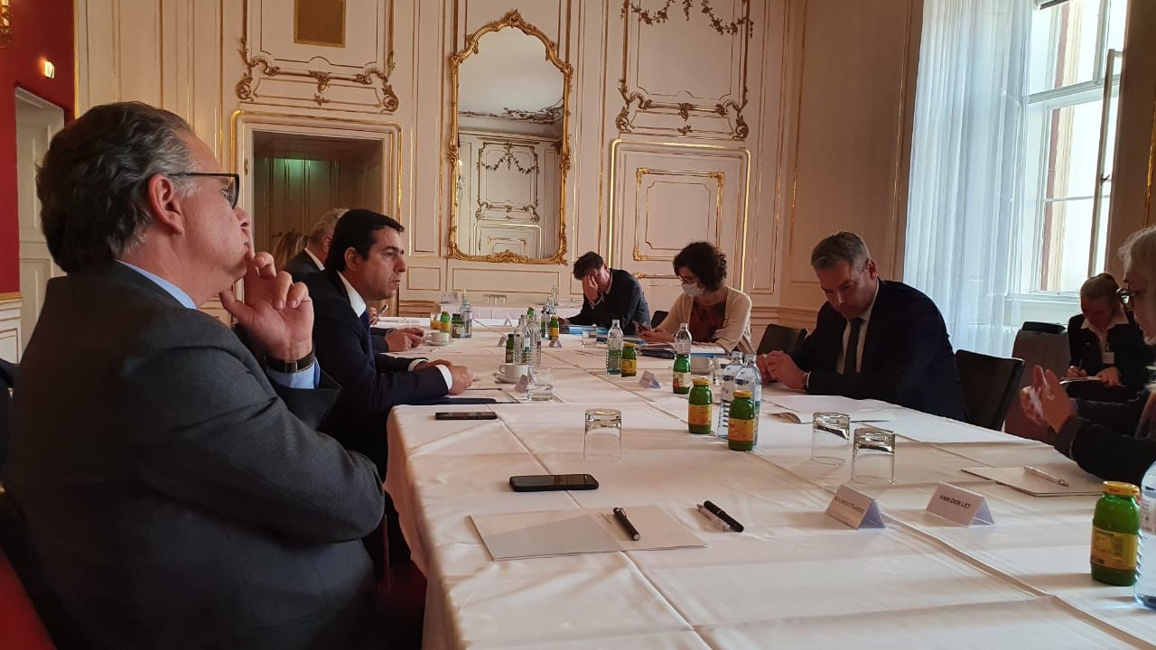 Ο υπουργός Μετανάστευσης και Ασύλου, κ. Νότης Μηταράκης και ο αναπληρωτής υπουργός, κ. Γιώργος Κουμουτσάκος, συμμετείχαν στη Διεθνή Υπουργική Διάσκεψη για την καταπολέμηση της παράτυπης μετανάστευσης στην οδό της Ανατολικής Μεσογείου, η οποία πραγματοποιήθηκε στις 22-23 Ιουλίου στη Βιέννη με πρωτοβουλία του Αυστριακού Υπουργού Εσωτερικών κ. Nehammer.