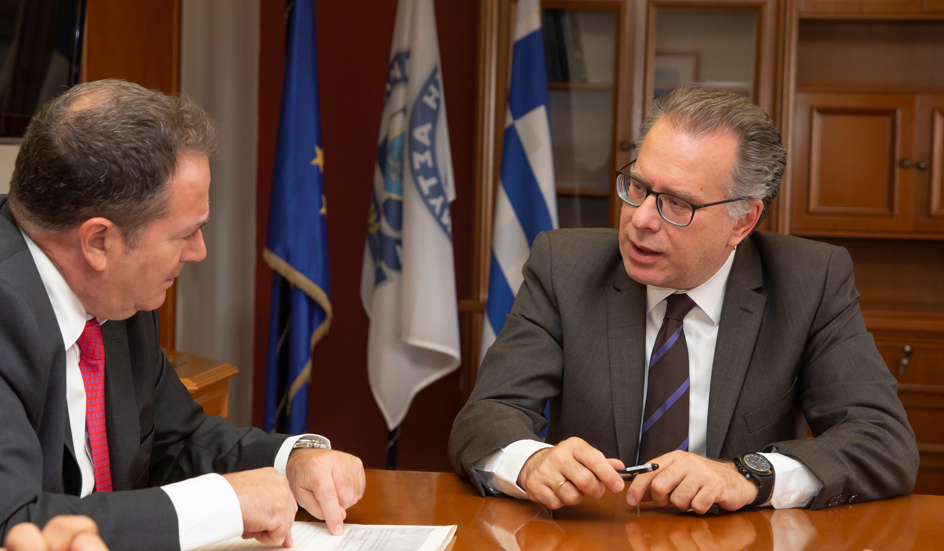 O Αναπληρωτής Υπουργός Προστασίας του Πολίτη, αρμόδιος για τη μεταναστευτική πολιτική, κ. Γιώργος Κουμουτσάκος, είχε σήμερα συνάντηση με τον Επικεφαλής της Αντιπροσωπείας της Ευρωπαϊκής Επιτροπής στην Αθήνα κ. Γιώργο Μαρκοπουλιώτη.