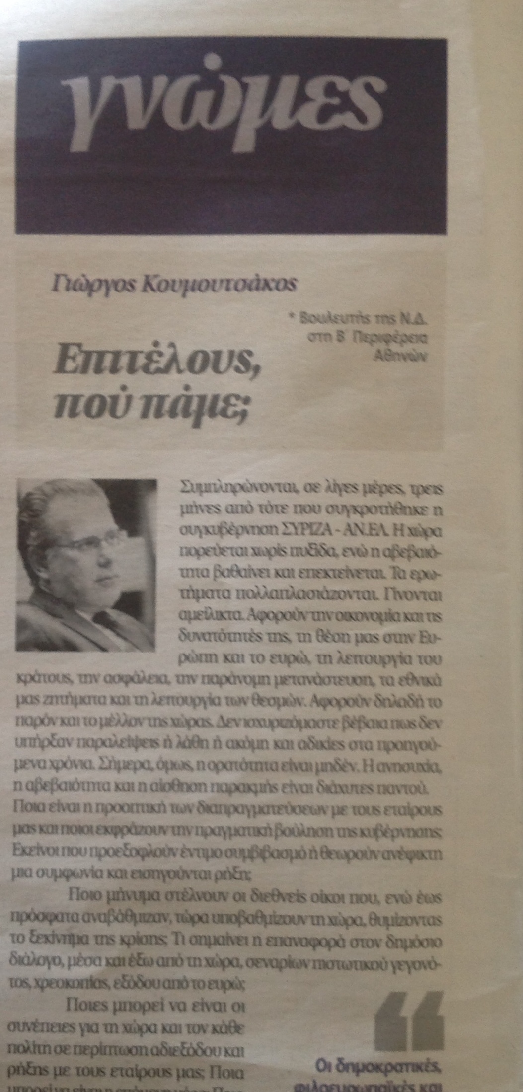 Προς: τον Υπουργό Επικρατείας κ. Νίκο Παππά και τον Υπουργό Εξωτερικών κ. Νίκο Κοτζιά