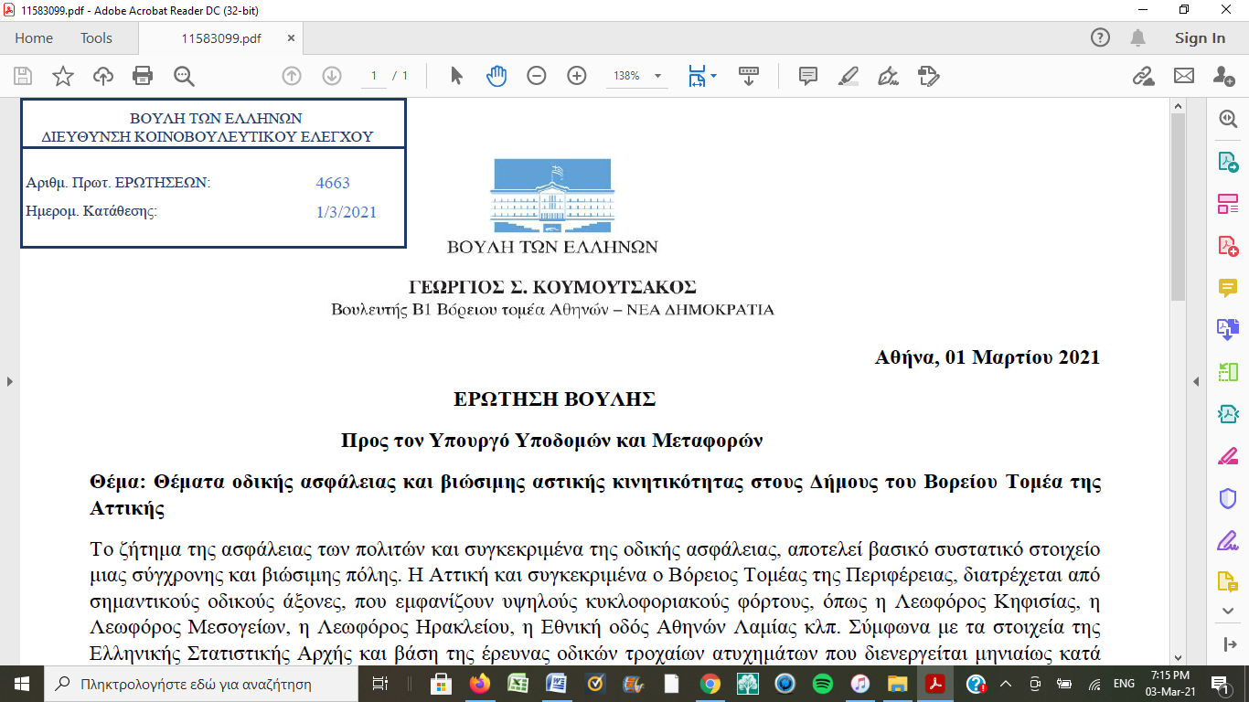 ΔΕΛΤΙΟ ΤΥΠΟ Ο κ. Γεώργιος Κουμουτσάκος Βουλευτής Β1 του Βορείου Τομέα Αθηνών πραγματοποίησε την Τρίτη 10 Μαρτίου 2021, επίσκεψη στο Δημαρχείο Παπάγου-Χολαργού όπου συναντήθηκε με τον Δήμαρχο κ. Ηλία Αποστολόπουλο. Ο κ. Γ. Κουμουτσάκος ενημερώθηκε από τον κ. Ηλία Αποστολόπουλο για τα θέματα της περιοχής, καθώς και τους στόχους της Δημοτικής Αρχής…