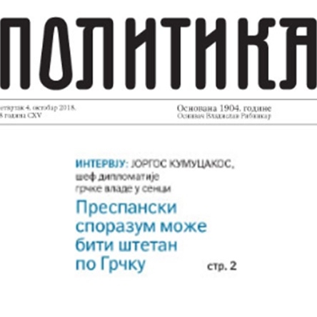 περισσότεραΣυνέντευξη στη σερβική εφημερίδα Politika που δημοσιεύεται σήμερα, έδωσε ο Βουλευτής Β’ Αθηνών και Τομεάρχης Εξωτερικών της Νέας Δημοκρατίας κ.Γιώργος Κουμουτσάκος στο πλαίσιο διήμερης επίσκεψής του στο Βελιγράδι με αφορμή τη συμμετοχή του στο συνέδριο του Economist «7th EU Southeast Europe Summit».